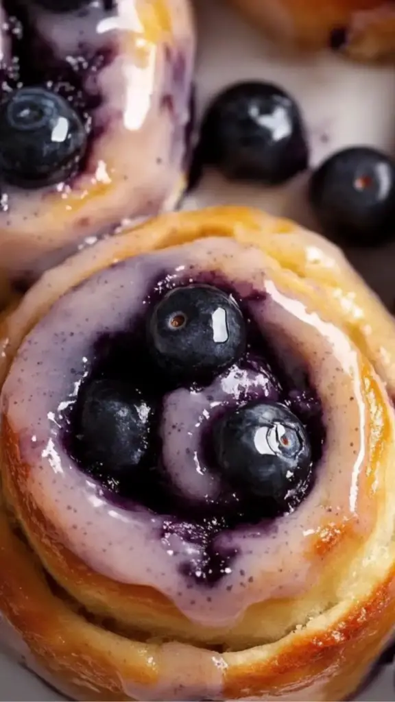 Soft, fluffy cinnamon rolls swirled with juicy blueberries and topped with a vibrant blueberry glaze—this is the ultimate fruity twist on a classic! Sweet, gooey, and beginner-friendly, these rolls are perfect for breakfast or dessert! 🫐🍥💜