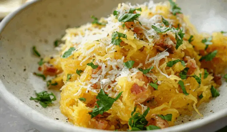The spaghetti squash provides a nourishing and satisfying base that holds up beautifully to the silky egg-parmesan sauce. Chicken replaces bacon seamlessly, bringing savory depth while keeping it lighter and more accessible. It’s a perfect dish for anyone easing into a low-carb or gluten-free lifestyle or just looking for a smart way to bring more vegetables into dinner.