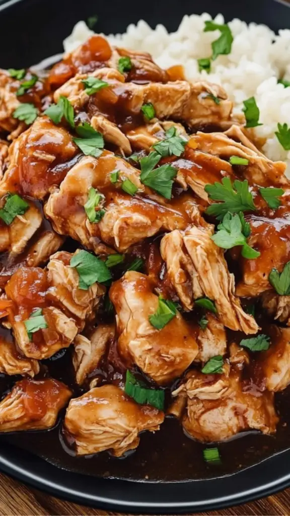- Stovetop Version: If you don’t have a slow cooker, you can make this on the stovetop. Simply cook the chicken in a pot over medium heat for about 30–40 minutes, then shred it and thicken the sauce.