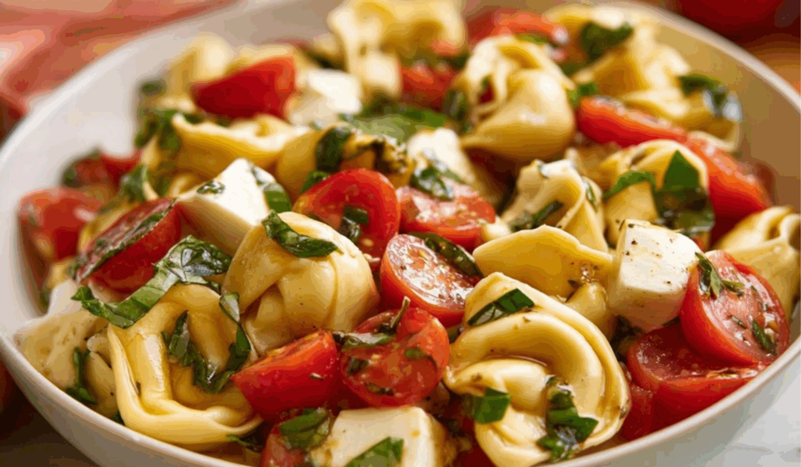 Fresh Tortellini Caprese Salad with Juicy Cherry Tomatoes and Savory Chicken