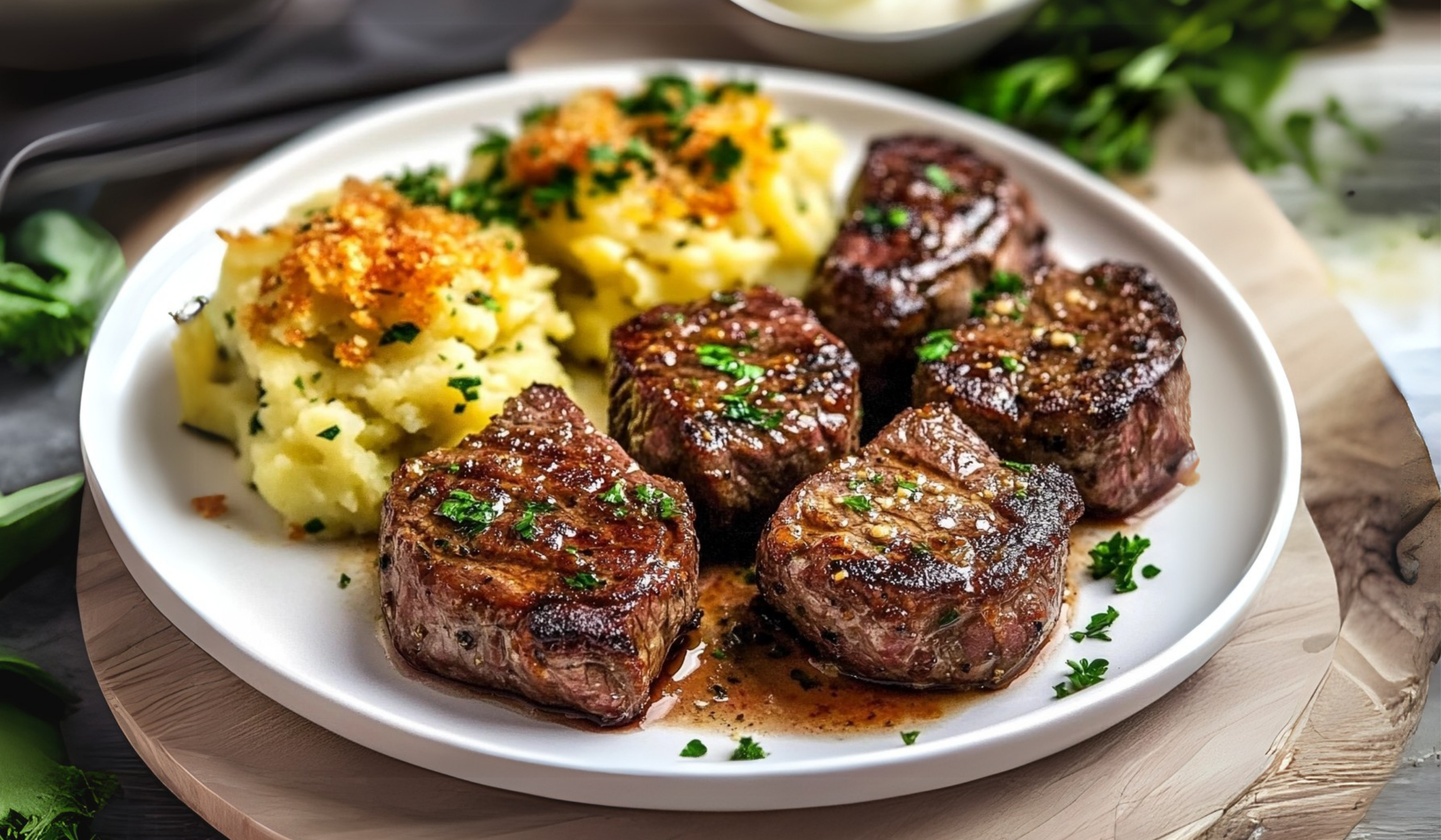 - Serve the garlic butter steak bites alongside the crispy cheddar smashed potatoes for a complete, flavorful meal.