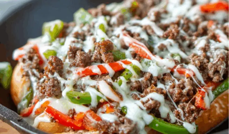 If you’re looking for a low-carb dinner that doesn’t compromise on flavor, this Ground Beef Philly Cheesesteak Skillet is the answer. Inspired by the classic sandwich, this dish uses seasoned ground beef, sautéed peppers and onions, savory mushrooms, and melted provolone cheese to recreate the beloved cheesesteak experience—without the bread.