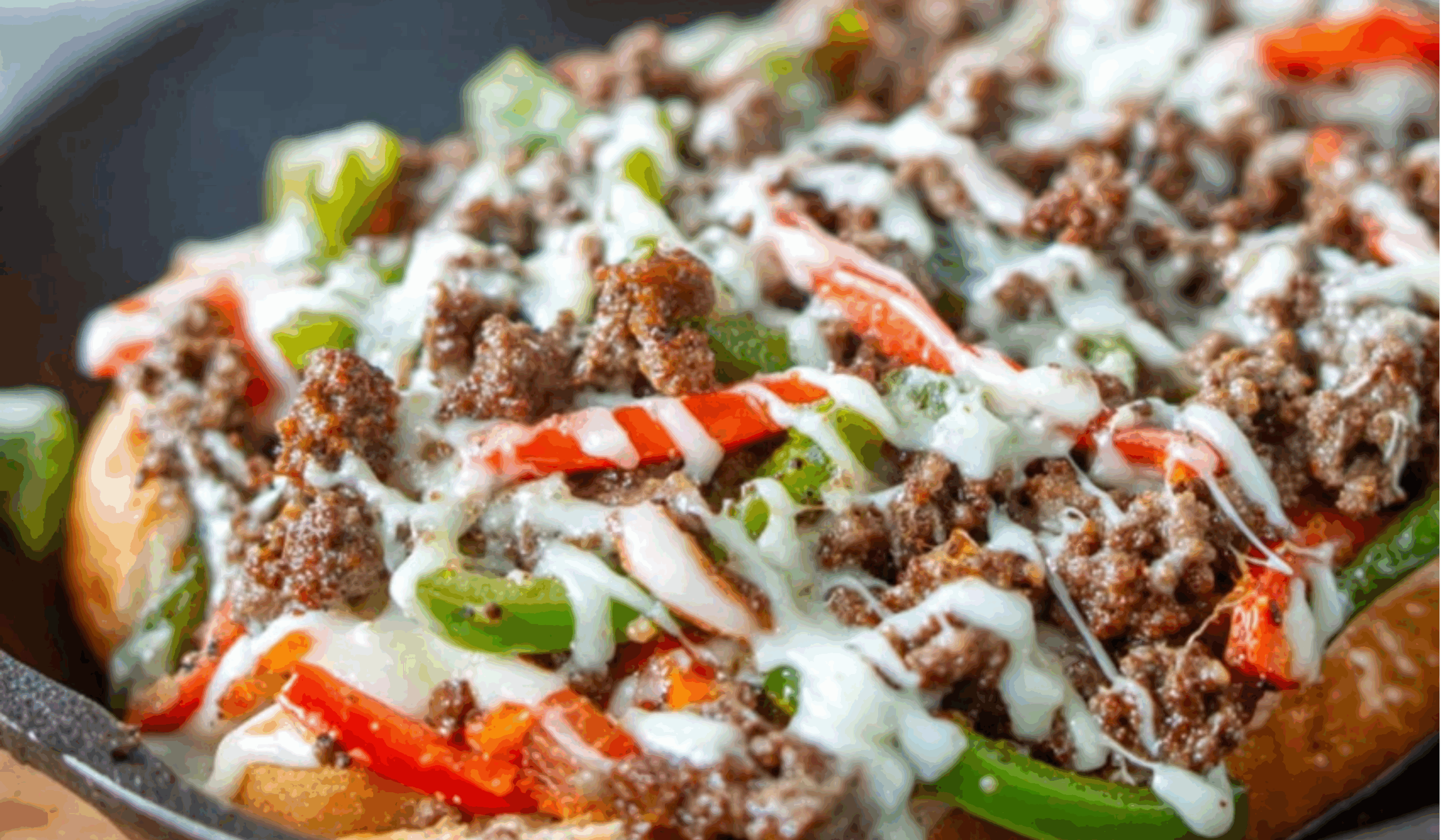 🥩🫑 Craving cheesesteak without the carbs? This Low-Carb Ground Beef Philly Cheesesteak Skillet has you covered! Juicy ground beef, sautéed peppers and onions, and melty cheese come together in one skillet for a fast, flavorful meal. 🧅🧀 It’s keto-friendly, gluten-free, and totally satisfying—perfect for busy weeknights or meal prep. All the classic Philly flavor, minus the bread! 🥄🔥