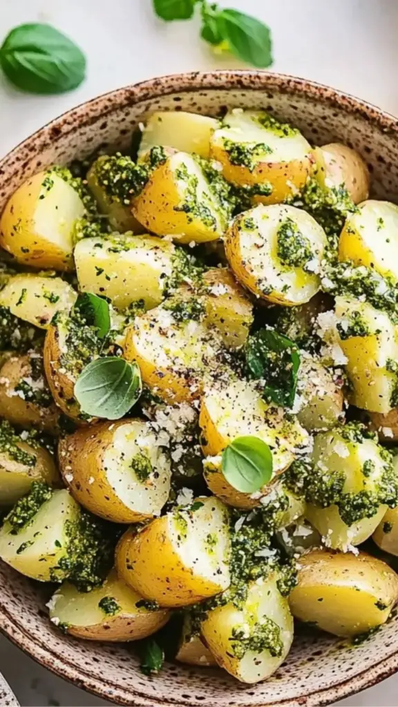 #PotatoSaladPerfection #PestoLovers #HerbaceousDelight #EasySideDishes #FlavorfulAndFresh #QuickSaladRecipe #NuttyAndZesty #DeliciousAndSimple #MealEnhancer #SimplePleasures