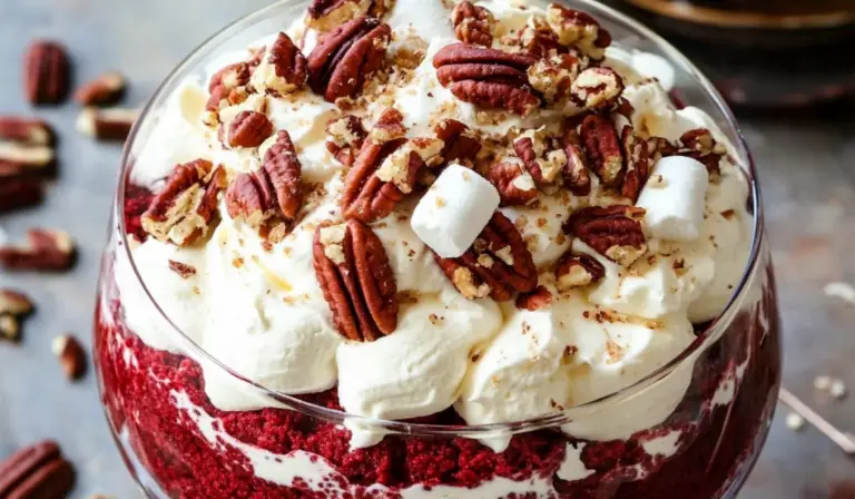 The idea of a trifle might seem like something reserved for experienced bakers, but this recipe breaks it down into easy-to-follow steps, making it a perfect choice for beginners. The layers of fluffy red velvet cake, tangy cream cheese mascarpone frosting, and sweet marshmallow whipped cream come together in a stunning dessert thatās as delicious as it is visually striking. Whether youāre looking to impress guests or indulge in a sweet treat, this trifle is guaranteed to be a crowd-pleaser.