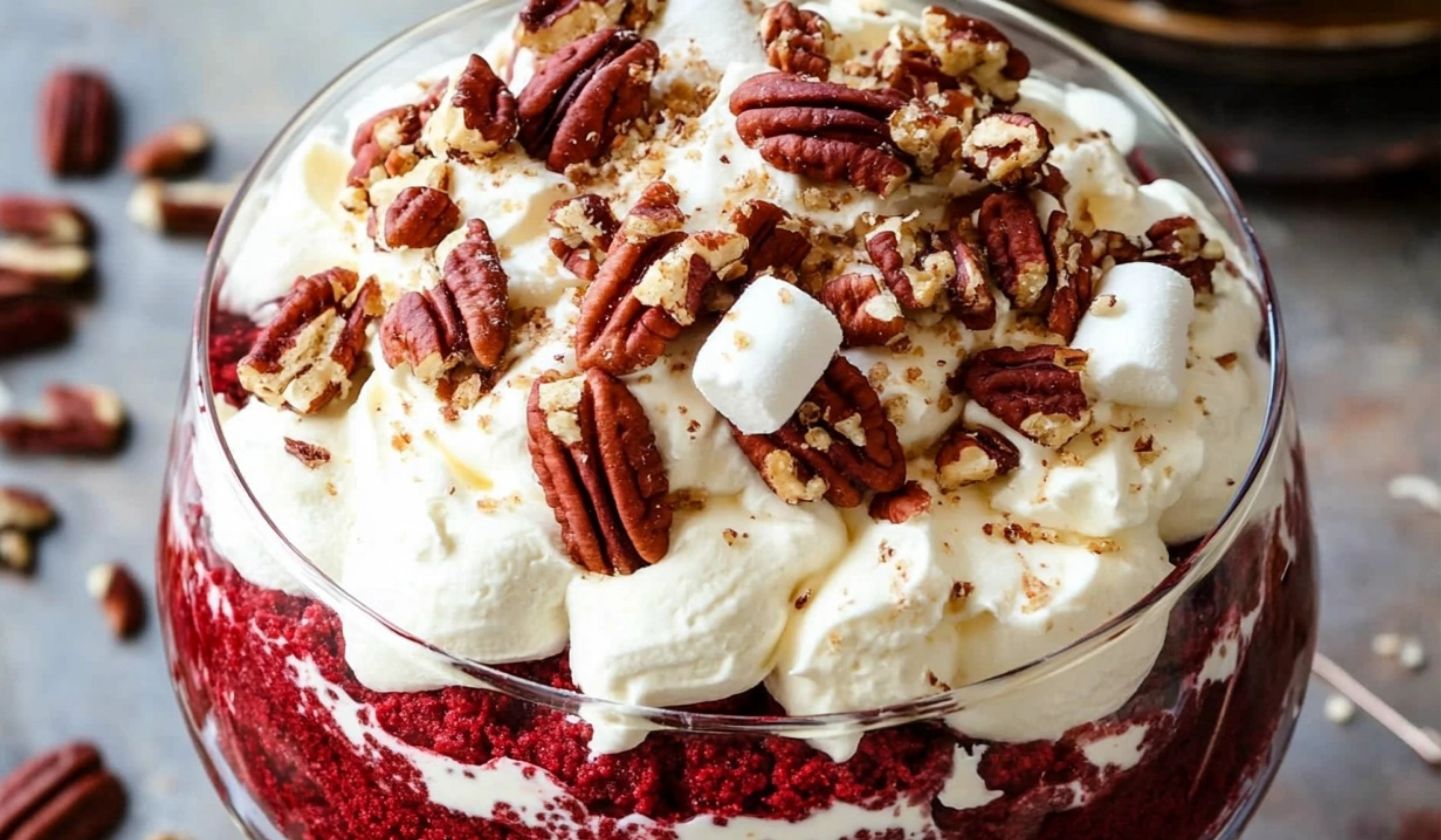 - Pecans, crushedĀ ā Optional, but they add a lovely crunch and complement the softness of the cake and cream. You can substitute with walnuts if you prefer.