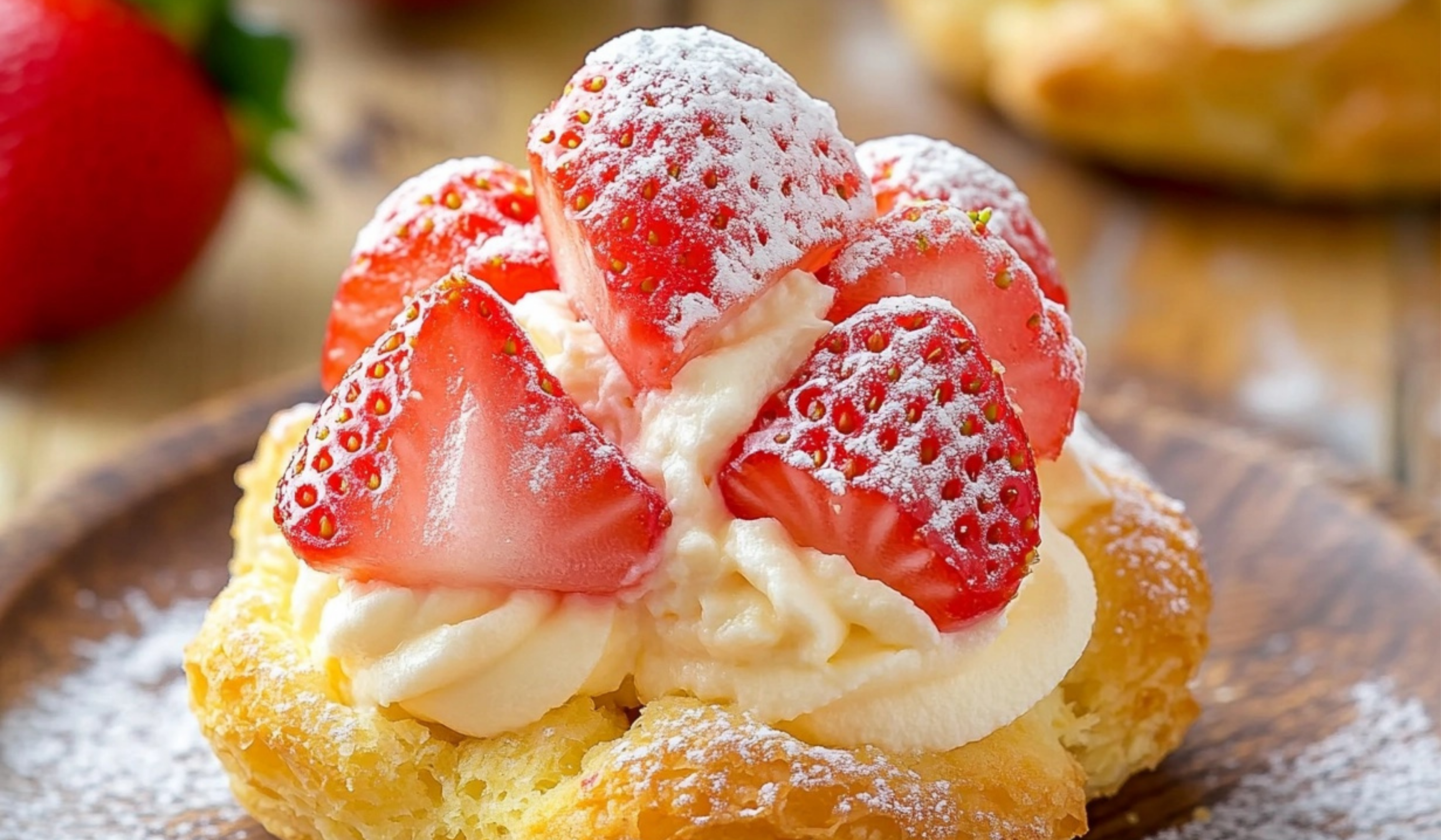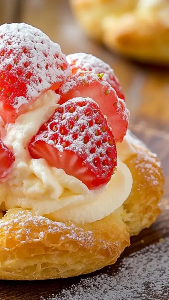 - Simple Ingredients: No specialty items required—just flour, butter, eggs, cream, and strawberries.