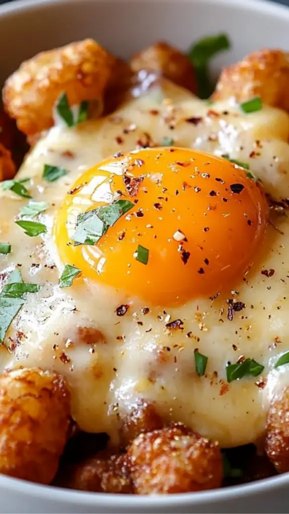 There’s something incredibly comforting about a warm, hearty breakfast that fuels your morning with rich flavors and satisfying textures. The Tater Tot Breakfast Bowl is a dream meal for anyone who loves crispy potatoes, creamy gravy, and perfectly cooked eggs all in one dish. It combines the best of American breakfast staples—crispy tater tots, savory beef gravy, melted cheddar cheese, and fried eggs—stacked together in a deliciously indulgent yet easy-to-make bowl.